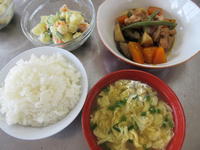 3年生の普通科クラスでは、本年度は22名の生徒がフードデザインの授業を選択しています。現在は、7月に受験する家庭科食物調理技術検定3級に向けて、調理技術の向上を目指しているところです。本日の授業では、かき玉汁、鶏肉と野菜の煮物、マセドアンサラダの調理をしました。調理実習の回を重ねるごとに、少しずつ上達しています。