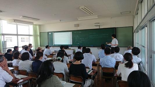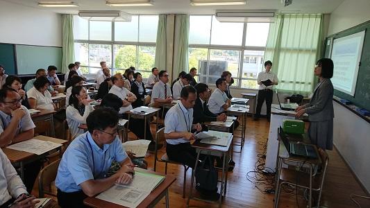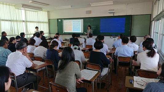 2月14日(木)、「授業のUD化」に関する職員研修を実施しました。今年度、御船高校では「授業のUD化」に取り組んできました。すべての生徒がわかる授業の実現を目指し、全職員で統一的な授業デザインに沿った授業に取り組み、研修を重ねて来ました。今回は「授業のUD化」の総括として、県立教育センターから簗指導主事をお招きし、職員研修を実施しました。本校職員による授業実践例の報告のあと、簗指導主事からは、実際の「倫理」のミニ授業を行った上で「授業のUD化」の実際について講義をして頂きました。今回の研修では、本校の今年度の取組を評価して頂きながら、次年度に向けての授業改善のヒントを多く得ることができ、非常に有意義な研修となりました。