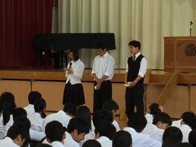 1,2年生も自分のことと考え、毎日の学校生活を頑張て欲しいと思います。