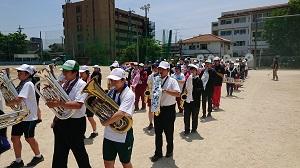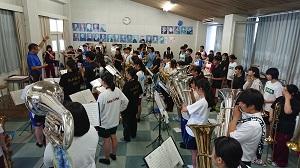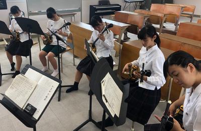 吹奏楽部は5月30日(木)に行われる県高校総文祭パレード部門に「熊本合同チーム」の一員として参加します。「熊本合同チーム」は熊本国府高校、熊本中央高校、熊本農業高校、御船高校の吹奏楽部と、熊本中央高校のバトンで構成されています。25日(土)、熊本国府高校で行われた合同練習は3回目、各校での練習の成果をしっかり合わせようと気合も入りました。暑い中きつかったですが、交流も深まり、当日が楽しみになってきました。5月30日(木)当日は、15:40に新市街入り口からパレードがスタート、25校15団体が上通までアーケード内をパレードします。熊本合同チームは10番目にスタートします。