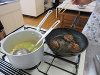 中間考査の最終日、炒飯と粟米湯(スーミータン)の調理をしました。3日間の考査を終え、美味しい昼ご飯に部員たちの笑顔がこぼれていました。