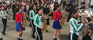 5月30日(木)、第31回熊本県高等学校総合文化祭が開幕しました。総合開会式は明日31日(金)ですが、毎年パレードが大会のスタートを切り、県民の皆様に高校生の文化の祭典をお知らせします。今年は、新市街アーケード入口をスタートとして上通アーケードの終わりまで、吹奏楽隊21校、郷土芸能隊4校が15チームを結成してパレードを行いました。