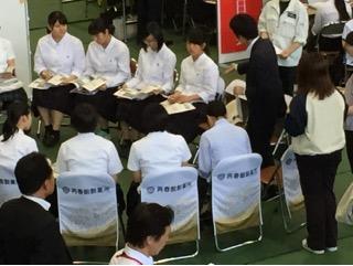 6月6日(木)午後、熊本市総合体育館で行われた「高校生と企業との交流会」に、就職希望者85人が参加しました。県内50社のブースがあり、生徒たちは関心のあるブース4箇所を回って、熱心に話を聞いていました。今後本格化する進路選択に生かしてくれるものと思います。