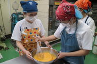 熊本地震から4年目をむかえ、被災を未来につなげるための御船町のイベント「第3回 復興祭」が6月15日(土)に御船町カルチャーセンターにて開催されます。復興祭では、オープニングイベントとして本校書道部が書道パフォーマンスを披露します。また、本校家庭クラブが御船町陣にあるパティスリー「モンパリ」さんと一緒に作ったオリジナルレシピのマドレーヌを販売します。6月8日(土)に、生徒たちがモンパリさんの工場にお邪魔して、御船町内産のはちみつと茶葉(緑茶とほうじ茶の2種類)の入ったマドレーヌを600個焼きました。復興祭では230袋(2個入り)を販売予定です。