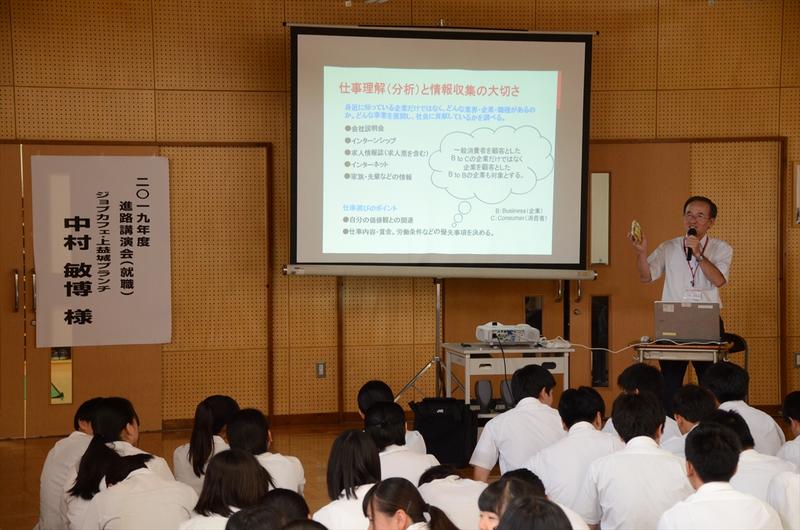今回の学年集会では進学と就職の2方向から、3学年の全生徒の進路実現に向けて考えました。