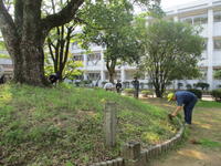 本校は「天神の森の学び舎」です。「天神の森」に手を入れ、より美しくなった姿で中学生を迎えて欲しいというのが私たち教職員の思いです。