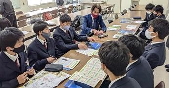 3月5日(金)の1年生「総合的な探究の時間」は、今年度取り組んできた「御船町の魅力あるまちづくり研究」の成果として、まちづくりの提案や考察結果を班ごとに発表しました。「地域公共交通の維持」「観光客誘致のためのゲーム開発」「吉無田高原のキャンプ場改革」「VR(仮想現実)やAR(拡張現実)による活性化」「インスタグラムを利用した特産物アピール」「町民の健康増進のための仕組みづくり」など、取り組んだ研究テーマもアイデアも多彩で、生徒たちは研究の成果とともに地域おこしへの思いを交えて精一杯説明をしてくれました。これまで継続的にご指導いただいてきた御船町役場、御船町商工会、御船町観光協会(御船町地域おこし協力隊)の皆さまにも来校いただき、講評や助言もいただきました。今後はいただいたアドバイスも踏まえて「提案書」を完成させて御船町役場に提出し、報告させていただく予定です。