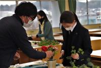 2月18日(木)の放課後、「モアフラワー」の村上先生に講師を依頼し、フラワーアレンジメント講習会を実施しました。華道(池坊)と違う生け方・花の種類に戸惑いながらも、どう生けようか、、、と悩むのが楽しくてアッという間に時間が過ぎました。村上先生の丁寧な指導に感謝します。
