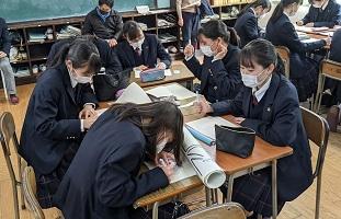 1月22日(金)の1年生「総合的な探究の時間」は、2学期に取り組んできた「御船町研究」のまとめとして作成する「提案書」の仕上げに入っています。これまで御船町役場、御船町商工会、御船町地域おこし協力隊など、地域の皆さまに講話や情報提供、助言を受けながら、班ごとに「御船町の魅力的な町づくり」についてアイデアを練り上げてきました。これを「提案書」という形にまとめ、1年間の学びの成果としたいと考えています。完成した「提案書」は、御船町役場に提出し、報告させていただく予定です。