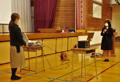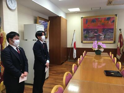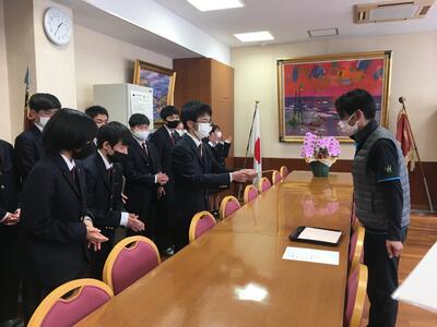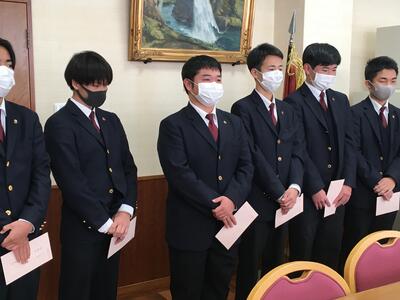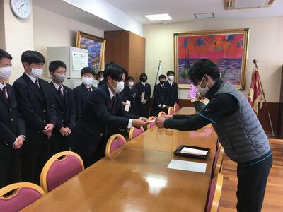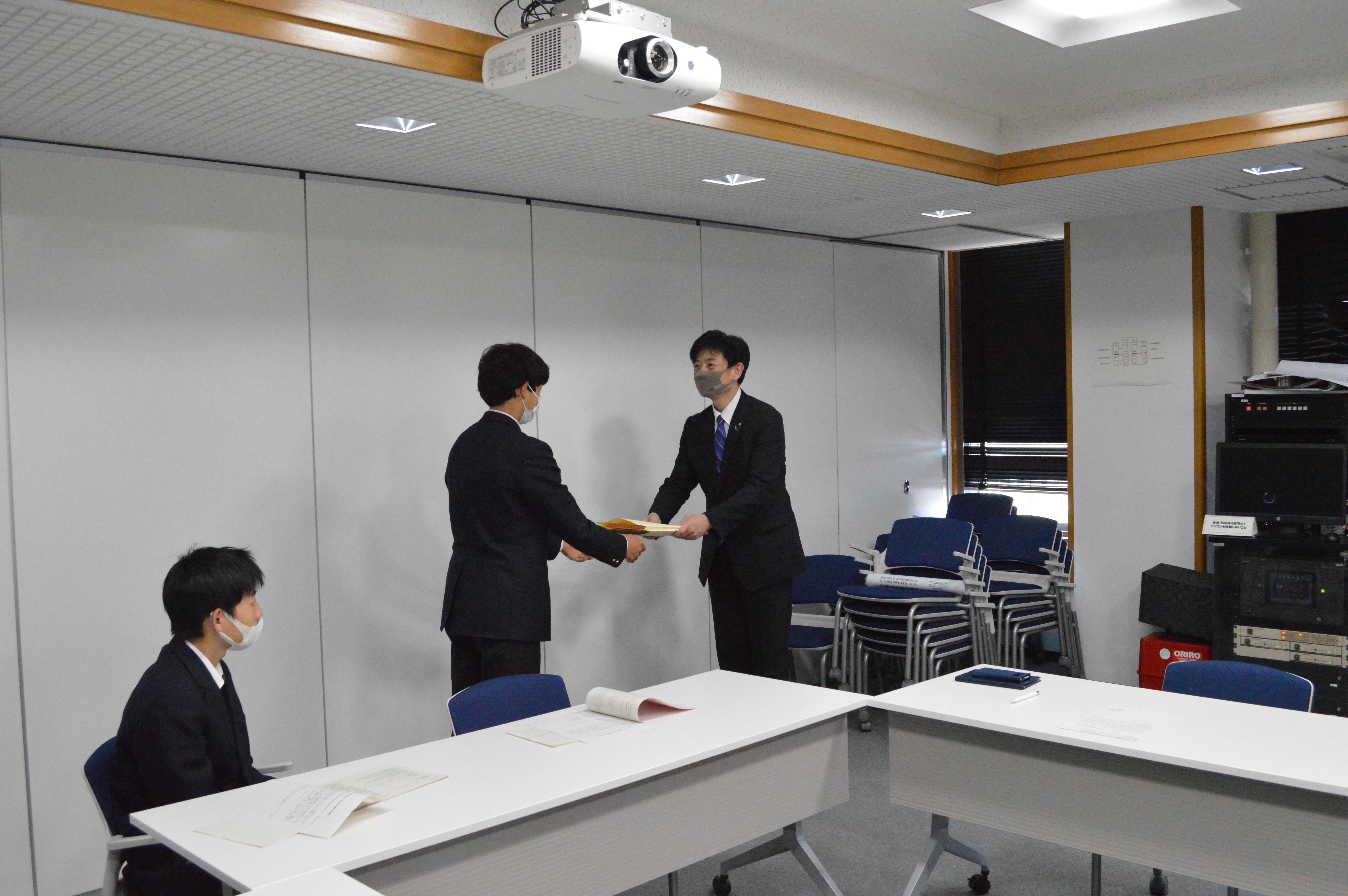 令和4年(2022年)1月9日に行われるジャパンマイコンカーラリー2022全国大会に出場する2選手に対して育友会と同窓会から奨励金の授与式がありました。