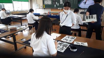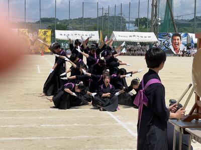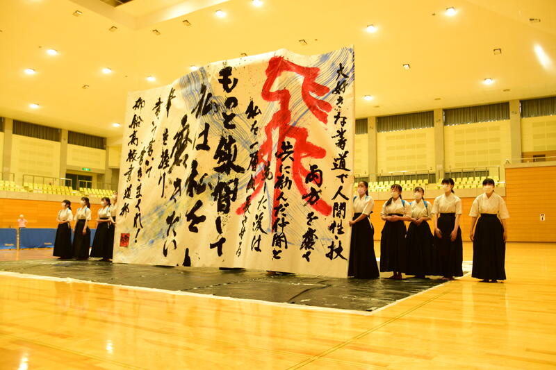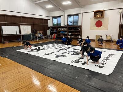 7月に愛媛県で開催される書道パフォーマンス甲子園の本選に出場することを目標に、これまで懸命に練習を重ねてきました。今回は、書道をとおして部員同士で切磋琢磨しながら成長し、未来へ飛び立つ姿を表現しました。