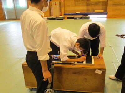 校長先生から「精密機械での大会で、調整が大変だと思います。本番に向けて体調管理同様、マシンを大切にして頑張ってきてください」と激励の言葉がありました。
