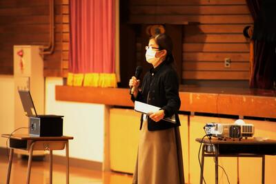 前半は大学のパンフレットを参考にして大学での学びについて説明され、後半は、徳冨先生の専門分野である薬学について講話をしていただきました。