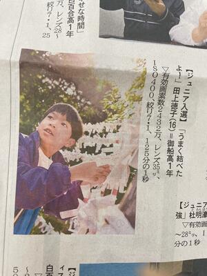熊本日日新聞主催 熊日フォトサークル特設ジュニア部門 入選!