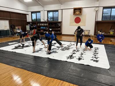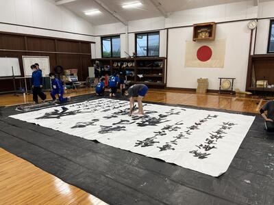 いつも見事な揮毫パフォーマンスを見せてくれる書道部の練習に潜入してきました。立ち位置や動きを細かく確認しながら、審査に向けて余念がありません。