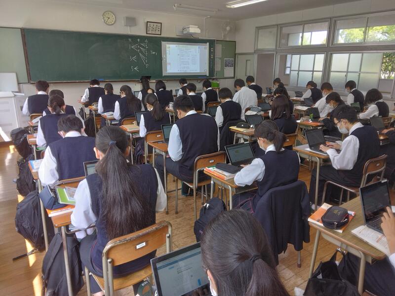 1学年も1人1台端末授業を開始しました。数学と同時にタイピングなどの情報活用能力も学んでいます。