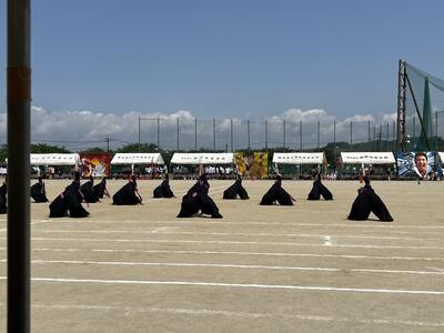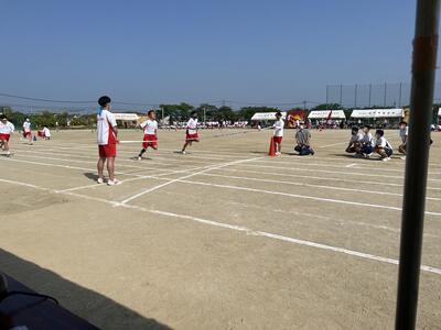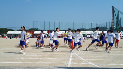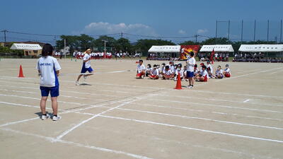 体育祭で最も長い距離を走る400M走。グラウンドを約2週します。参加した選手のみなさん、お疲れ様でした。