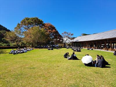 午前中は清和文楽館にて浄瑠璃を鑑賞し、 芝生広場で昼食をとりました。午後からはクラス別研修となり、 クラスごとに企業見学を行いました。