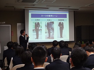 1月14日(火)、3年普通科を対象に、スーツの着こなしセミナーが行われました。