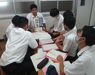 9月11日(金)、1年生の「総合的な探究の時間」は先週に引き続き「御船町研究」に取り組みました。今回は新たに「マンダラート」というワークシートを使って、御船町の課題を整理し、課題解決のためのアイデアを出し合いました。マンダラートとは、図の中央に書いた課題を克服するためのアイデアを、整理しながらより具体的に表現していくことで、目標達成のための思考を深めていくワークシートです。各グループとも、これまで調べたことをもとに活発にアイデアを出し合い、さらに調査すべきことについて熱心に議論していました。マンダラートの完成と発表が楽しみです。