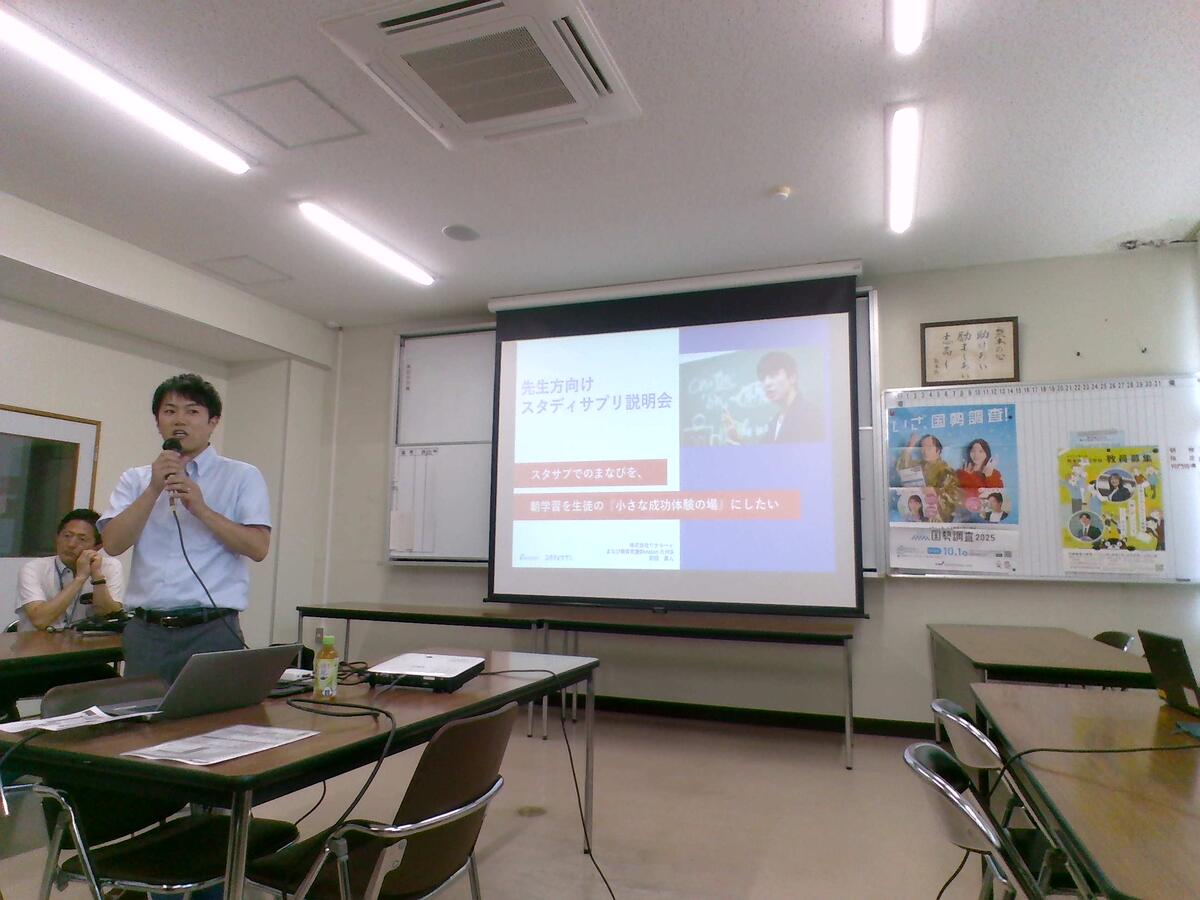 生徒向けの学習端末を利用して、御船高校では朝の学習の時間(まなびの森)を生徒の個別最適化の学習の時間としています。学習端末のより良い使用方法や他校の工夫について、リクルートの前田様をお招きしてお話をしていただきました。とても有意義な研修となりました。ありがとうございました。