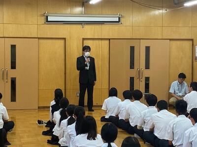 激励会では、校長先生から就職試験の合格の秘訣は、「この企業に合格したいという強い思いである」ことや、「第三者から見た自分の良いところを膨らませて、面接官にしっかりと伝えてほしい」とのお言葉をいただきました。激励会の後、就職担当の先生から、就職試験に関する注意事項の説明をしていただきました。