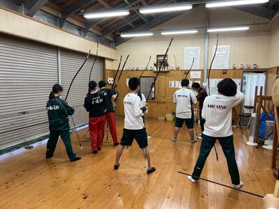 弓道部です。今日は1年生が当面の練習に使う矢を先輩たちが残したものから、状態の良さそうなものを選びました。