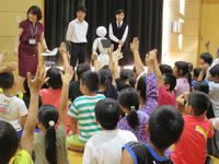 10月15日(火)の午後、御船町立御船小学校の3年生を対象とした英語の授業を参観しました。ソフトバンクグループ(株)が開発した人型ロボットのペッパー君を御船町教育委員会が無償で借り、そのペッパー君に搭載するプログラムを御船高校電子機械科の生徒が作り、実際に小学校の英語の授業で用いてみる事業に今年度取り組んでいます。企業、町教育委員会、県立学校、そして町立小学校が協力して、それぞれの持ち味を発揮して、「未来の授業」を創ろうというプロジェクトです。