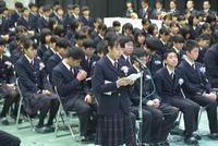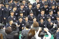 合格者説明会では新年度に向けての生活の心構えなどに加えて、新入生の皆さんが3年生になるときに本校が100周年を迎えることなどのお話がありました。