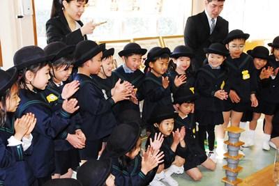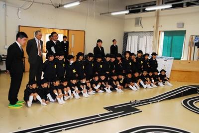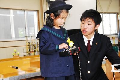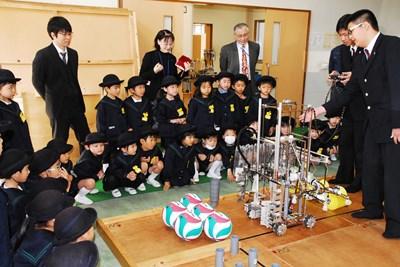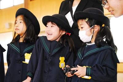 3月15日(金)の午前中に滝尾幼稚園の麒麟組園児33人が本校のロボット・マイコンカー実演・体験に参加してくれました。今年で10回目を迎え、御船町の「学園都市構想」の一環として関係を深めることやマイコン制御部のロボットやマイコンカーの実演や体験を通して、園児にものづくりの興味・関心をもたせることを目的で実施しています。