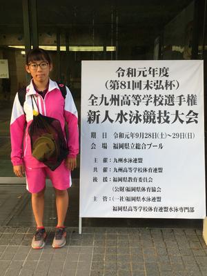 9月28日(土)、29日(日)に福岡県立プールで開かれた末弘杯に、一年生の江原史織さんが出場しました。種目は200m自由形と400m自由形です。200mは55人中35位、400mは36人中17位でいずれも自己ベスト更新はなりませんでしたが、この経験を次の大会に生かしてくれるものと思います。応援ありがとうございました。
