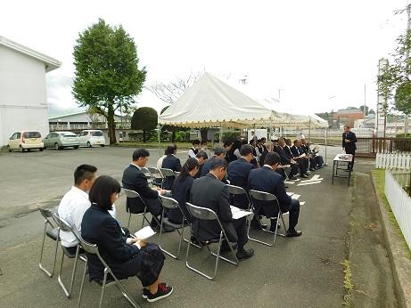 朗読後は、全校生徒で起立し、殉難の碑の方向を向いて黙祷を捧げました。