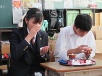 本日は、2年4組の千原くん、2年A組の千原くん、2年B組の山下くんが朗読に挑戦しました。