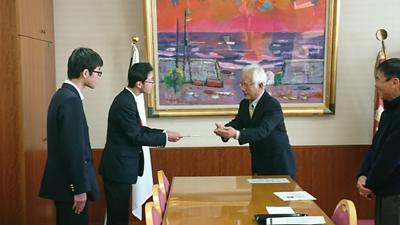 10月20日(金)、同窓会の方々が来られて、全国大会出場の奨励金授与式が行われました。