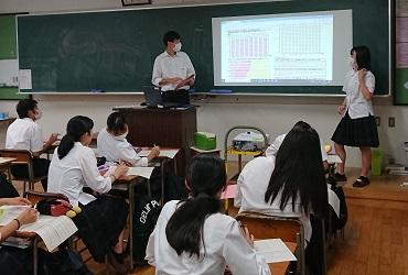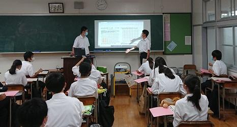 1年生の「総合的な探究の時間」では、自分が住む自治体の統計資料のグラフ化とその分析に取り組んできました。今週は、その分析結果をグループごとに発表しました。御船町を分析したグループの発表では、人口に関するグラフから「人口がやや減っている」「少子高齢化が進んでいる」、産業に関するグラフから「小売業販売額は増えている」と指摘、こうした分析結果を総合して人口増加を図るためには「若い世代の住みやすい町づくり」「“にぎわい”づくり」などが良いのではないか、などと発表をしていました。探究活動の基本スキルとして「統計資料に親しもう」ということで取り組んできましたが、グラフ化や分析の活動に、グループで協力しながら積極的な活動する姿が多く見られました。