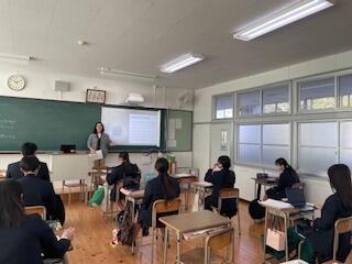 令和6年1月19日(金)6限目、総合的な探究の時間の課題研究発表会を行いました。クラス代表の発表者6名がそれぞれ調べたテーマについて、スライドを使って発表しました。生徒たちは発表を聞いて、興味深かったことや新しく知ることができたことなどを感想記入用紙に記入しました。