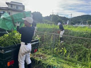7月の休日、保護者と在校生の有志による「御船高校周辺清掃ボランティア」を行いました。月末に予定している中学生体験入学に向けて、御船高校周辺の通学路や普段手が届かない箇所の草を刈りました。早朝にもかかわらず多くの保護者・生徒が集まってくださり、トラックいっぱいの草を刈ることができました。除草作業後、野球部の部員たちは、グラウンドで部活動に励んでいました。参加してくれたみなさん、ありがとうございました。