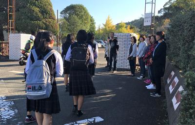 10月8日〜10日の定期考査期間中、育友会あいさつ運動を行いました。今日から中間考査が3日間行われます。1学期の期末期間は大雨のため中止となりましたが、今朝は心地よい秋風の中、一人一役の役員さんと総務委員さんで校門に立ちました。生徒も先生方も笑顔であいさつしてくださいました。ご協力いただきありがとうございました。(総務委員長 内村貴久子)