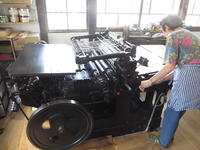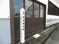 「県庁跡」は御船川左岸の本町通りです。ここはかつて御船の商業の中心だったところで、漆喰の白壁の建物前に「史跡 熊本県庁跡」の白い標柱が立っています。背後の建物は、築100年以上の歴史的建造物の「池田活版印刷所」(明治33年創業)です。こちらは今も鉛活字を使った昔ながらの手法で印刷を手がけておられます。先日、本校の美術科の職員等と訪問したところ、5代目店主の吉田典子さんが懇切丁寧にご案内してくだいました。店内は、インクの匂いが漂い、大量の鉛活字の棚や黒光りする印刷機が存在感を示しています。名刺やノートを手に取ると、活版印刷による味わい深い凹凸感がありました。今後、美術コースの生徒の見学やワークショップを実現したいと思います。