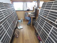 池田印刷所の隣が「御船街なかギャラリー」です。もともとは江戸時代後期に建てられた大きな町屋で、豪商の林田能寛(はやしだよしひろ)の商家(「萬屋」)でした。白壁土蔵造りの酒蔵や商家が次々と消えていく中、往時の町並みを伝える建物として御船町が所有し、現在は交流施設として観光協会が運営されています。太い梁や柱の趣ある主屋をはじめ離れや庭、さらには二つの大きな蔵があり、御船高校芸術コースの書道や美術の学習成果発信の場として活用できないか検討しているところです。