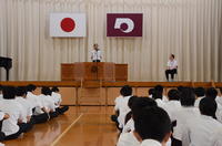 7月19日(金)に御船高校は1学期の終業式を迎えました。大掃除の後、午前9時20分から表彰式、ALT(外国語指導助手)のディラン先生の退任式を行いました。そして、生徒たちはそれぞれの教室に戻り、午前10時15分から放送による終業式を実施しました。体育館の暑さ対策のためです。