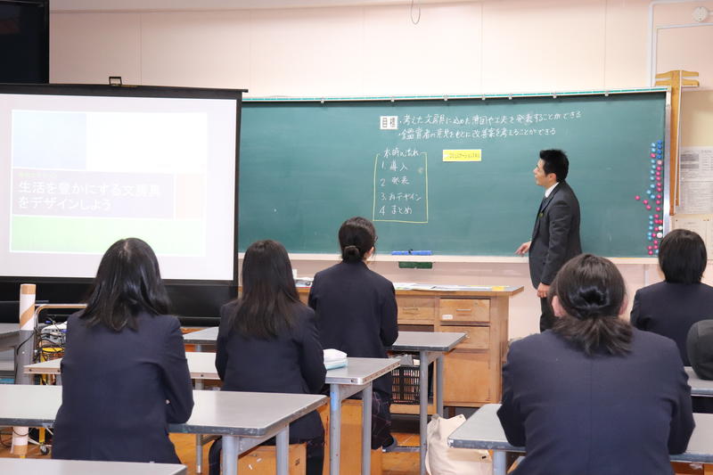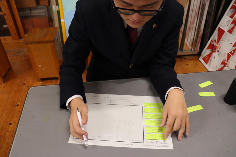 授業ではそれぞれデザイン案を考え、みんなに発表し、意見をもらい、それをもとにデザイン案を再デザイン