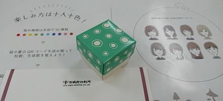 箱のデザインをされた社員の方の中には、本校芸術コースの卒業生の方もいらっしゃるそうです。御船高校で過ごす3年間がより充実したものであってほしい、というメッセージも込められた心あたたまる贈り物をいただきました。城野印刷の皆様、ありがとうございました。