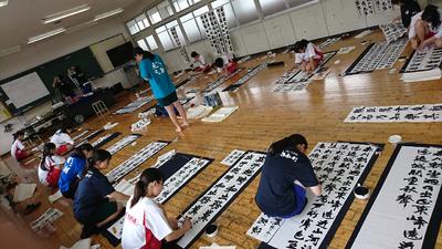 生徒たちは長期の臨時休業、部活動休止下も地道に自宅練習に励み、また登校日短時間の指導やインターネット添削を通じ、工夫して作品力を高めてきました。次は、9月の揮毫大会全員入賞を目標に、一丸となり励んでいきます。