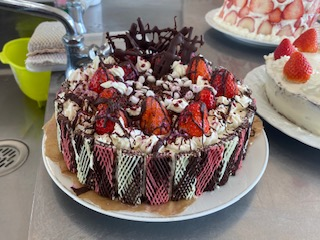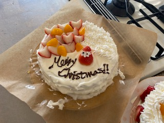 1年4組の書道・美術コースの生徒たちがクリスマスケーキを作りました。材料費ひとり250円。見た目も味も最高の力作です!