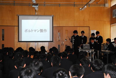 ①文化祭での電子機械科PR ②防球ネットの補修、製作 ③ボルトマン製作