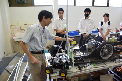 8月25日に、電子機械科2年生7人が、電気自動車やモーターについて学ぼうと