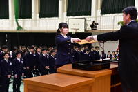 3月1日(金)。昨日から天候にも恵まれ、春の訪れを感じさせる中、第71回卒業証書授与式が本校体育館で行われ、卒業生198名(普通科123名、電子機械科75名)が、西澤賴孝校長より卒業証書を授与されました。厳粛な中にも、感動的な卒業式でした。