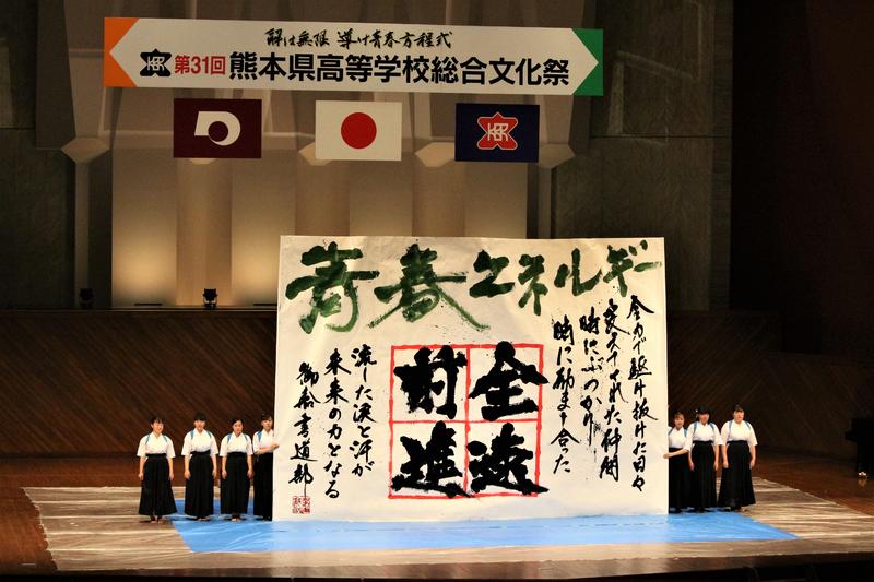 入学当初は、ほとんどがやっと書道らしい作品を書くだけの状況でしたが、先輩方の練習方法を学び、指導を素直に聞き練習を繰り返すうちに、それぞれが目標を持ち、自分らしい作品作りができるようになり、全国大会や九州大会、様々な展覧会で上位の成績を残すことができるようになりました。