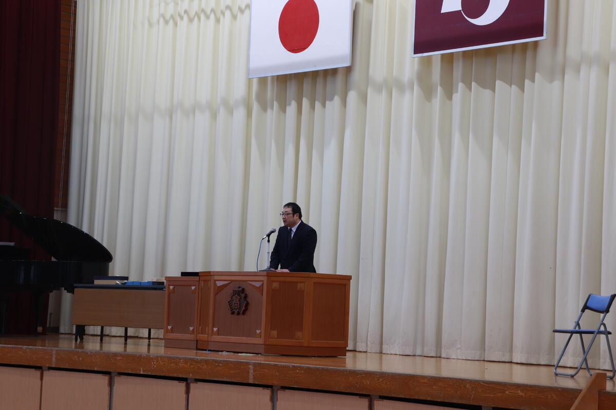 続いて、今学期をもって甲佐高校へ転任される今村先生の退任式が行われました。「これまでの教師生活の中で、御船高校が一番好きでした」という今村先生の心のこもったお言葉は、生徒・職員の心に深く残るものとなりました。